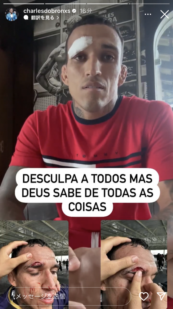 「皆ごめん」と謝り傷跡を公開するオリベイラ @charlesdobronxs