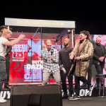 マイクを投げつけるダニス(右)@arielhelwaniより