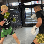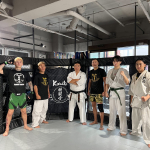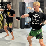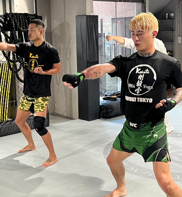 空手の稽古に励む平本(手前)と芦澤(奥)(剛毅會提供)