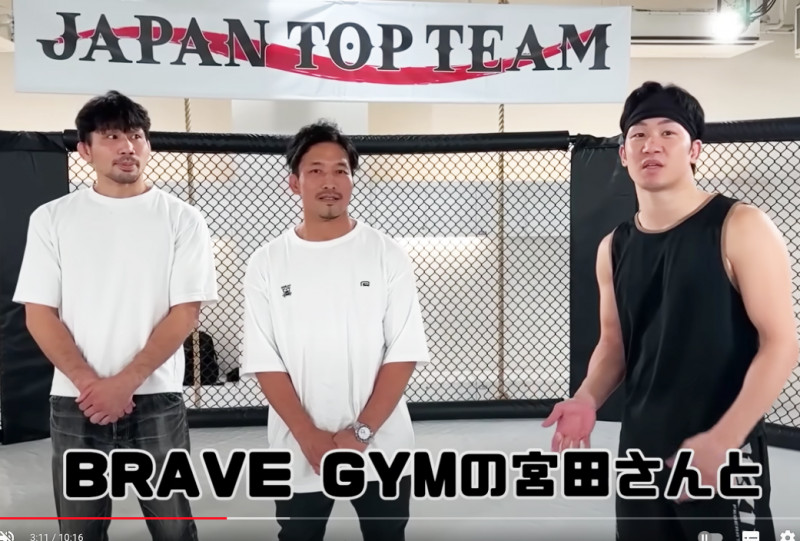 招聘された宮田和幸代表(中央)と、中村K太郎代表(右端)(朝倉未来YouTubeより)