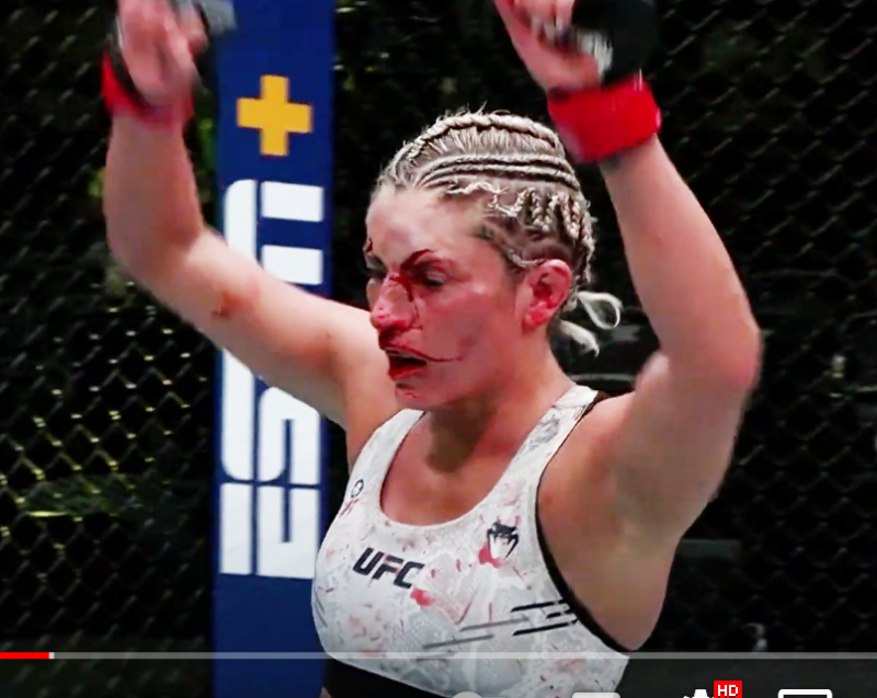 試合終了、顔面流血のヨーダー(UFC公式YouTubeより)