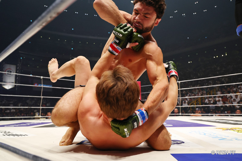 強烈なヒジを振り下ろすケラモフ
