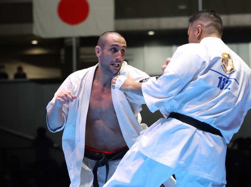 決勝:入来の接近戦にパンチで反撃するヴァレリー