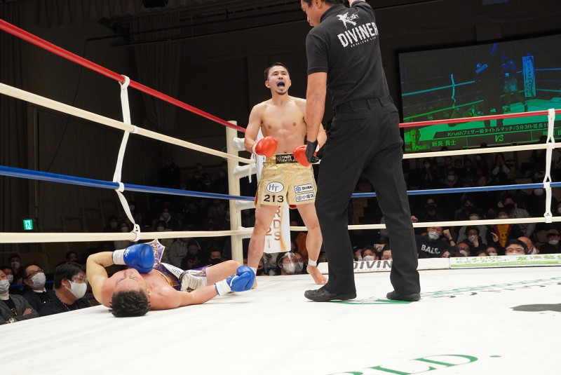 新見にKO負けを喫した篠塚(左)、この悔しさが練習量を増すきっかけになったという