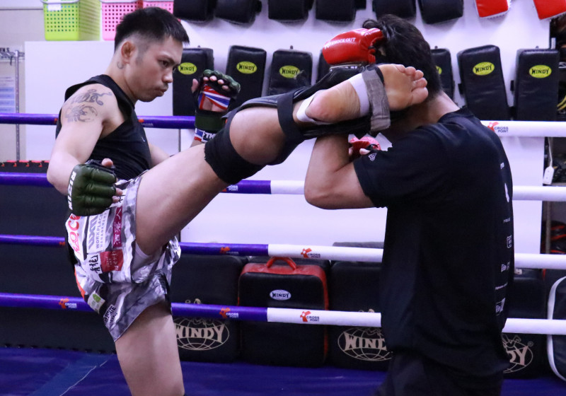 小笠原(右)とのスパー、ハイキックを放つ不可思
