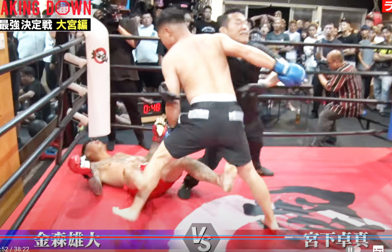 相手はバッタリとダウン(朝倉未来YouTubeより)