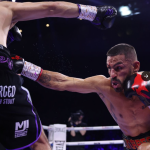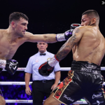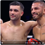 腫れた顔で引退を宣言したリナレス(@MatchroomBoxingより)