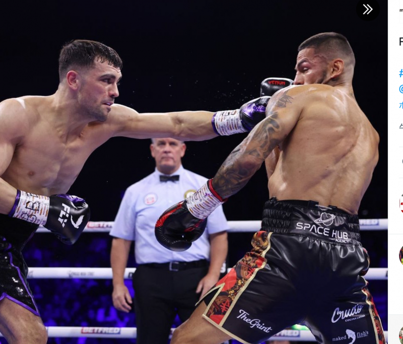 パンチを浴びるリナレス(@MatchroomBoxingより)