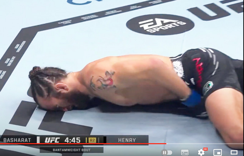 ヘンリーが前のめりに倒れる(UFC Japan公式YouTubeより)