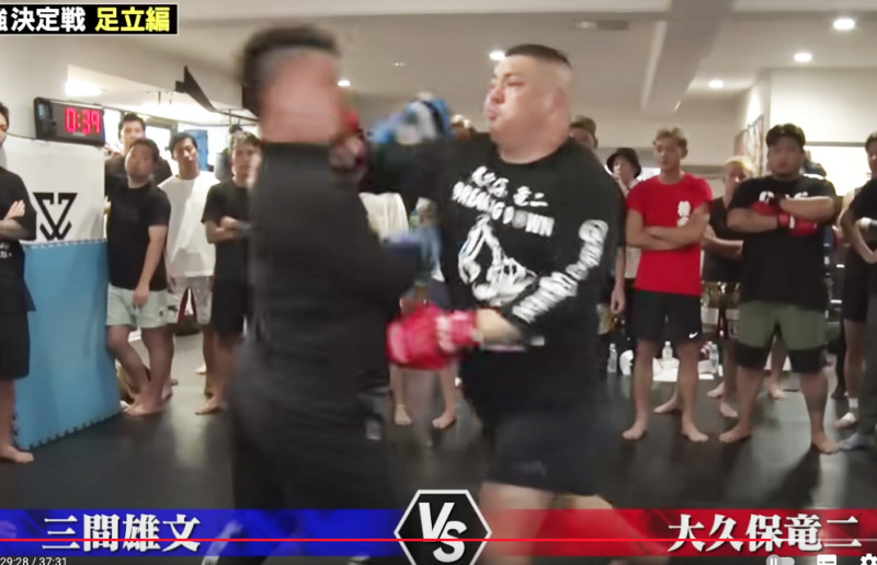 強烈な右ストレートを当てる大久保(朝倉未来YouTubeより)