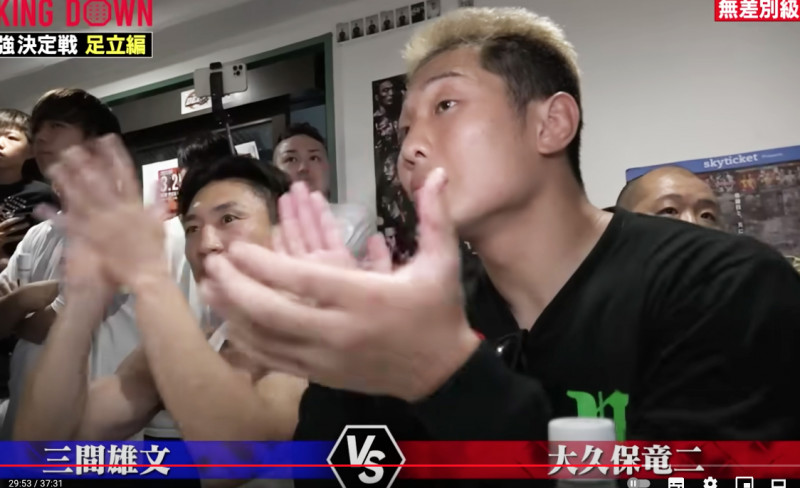 大久保の強さに監督の秀虎と樋口も拍手を送っていた(朝倉未来YouTubeより)