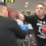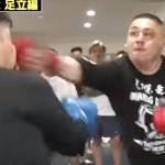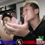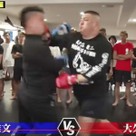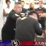 豪腕パンチをヒットさせる大久保(左)(朝倉未来YouTubeより)