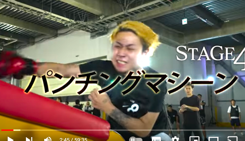 パンチングマシーンでパワー測定もあった(『朝倉未来YouTubeチャンネル』)