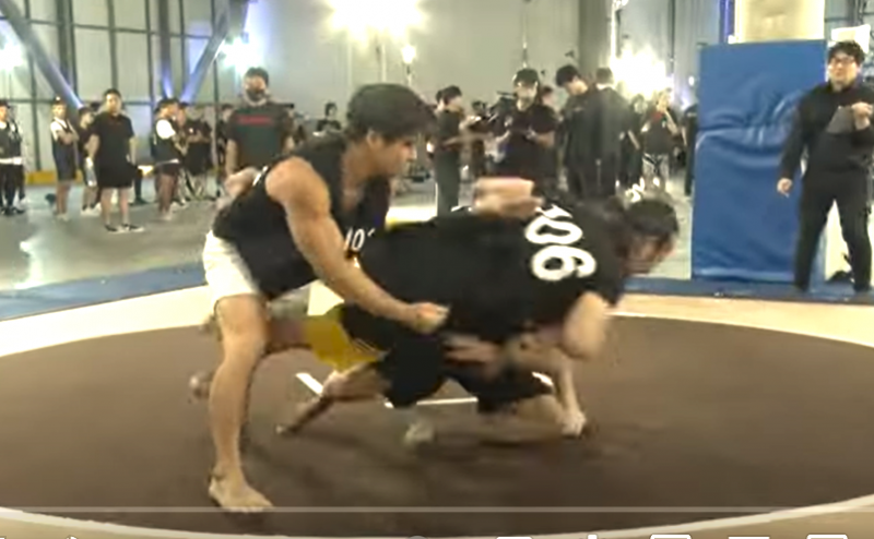 4人が土俵に上がって落とし合う相撲バトルロワイヤル(『朝倉未来YouTubeチャンネル』)