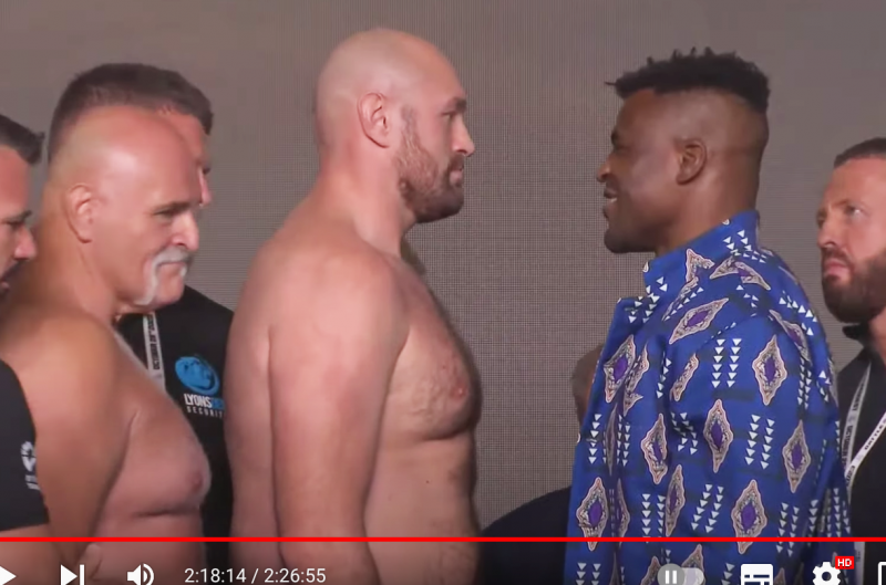 フューリー 父親、なぜか裸でフェイスオフに乱入(DAZN Boxing公式YouTubeチャンネルより)