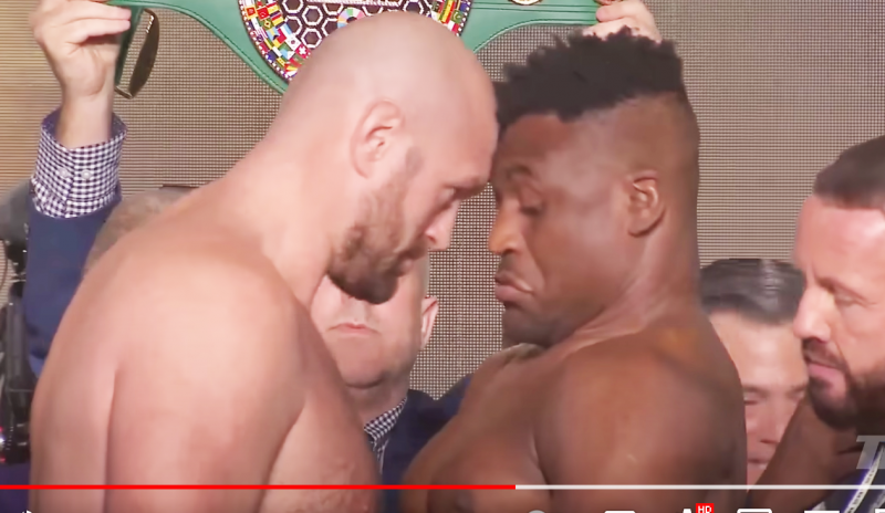 フェイスオフではフューリーが額をぶつけ挑発(TopRankBoxing公式youTubeより)