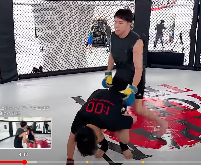 朝倉がレオからダウンを奪う。しかしそれでも立ち向かってきた(朝倉海YouTubeより)