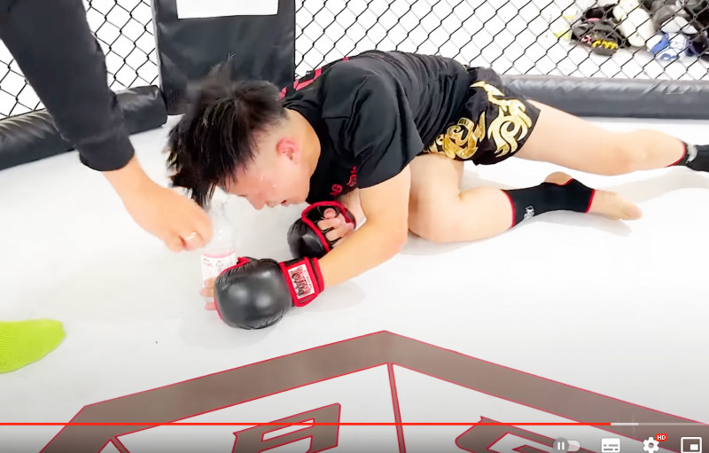 終わった後も疲労でバッタリと倒れた(朝倉海YouTubeより)