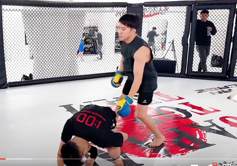 朝倉がレオからダウンを奪う。しかしそれでも立ち向かってきた(朝倉海YouTubeより)