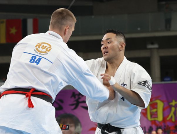 入来と大型外国人の突きが同時にボディにヒット!激闘の模様が放送される