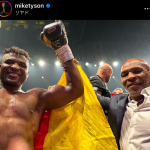 別角度:ガヌーの左フックがヒットした瞬間!これでダウンを奪う(c)DAZN