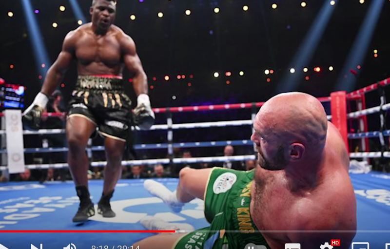 ダウンしたフューリーにガヌーが見下ろす(FrancisThePredatorNgannou公式YouTubeより)