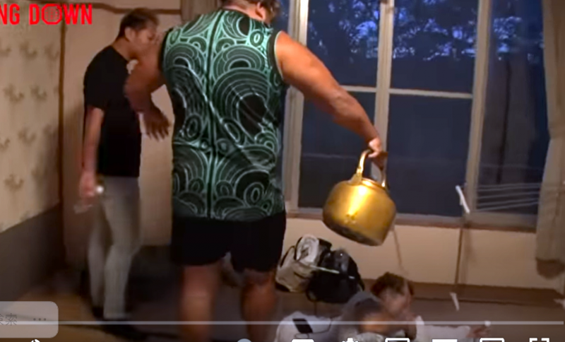ノッコンが寝ている喧嘩自慢の顔に水をかけて起こして回った(『朝倉未来YouTubeチャンネル』)