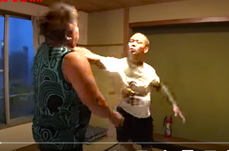 怒ったダイスケは右の張り手(『朝倉未来YouTubeチャンネル』)