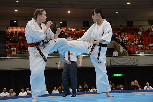森岡(右)はロシア王者に勝利し優勝した=23年全日本体重別