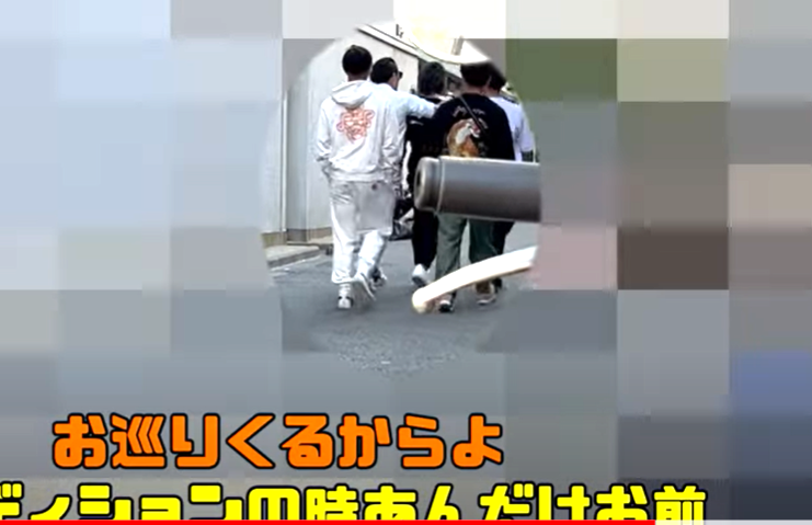 井上と演者4人は路地裏へ移動(『朝倉未来』YouTubeチャンネル)