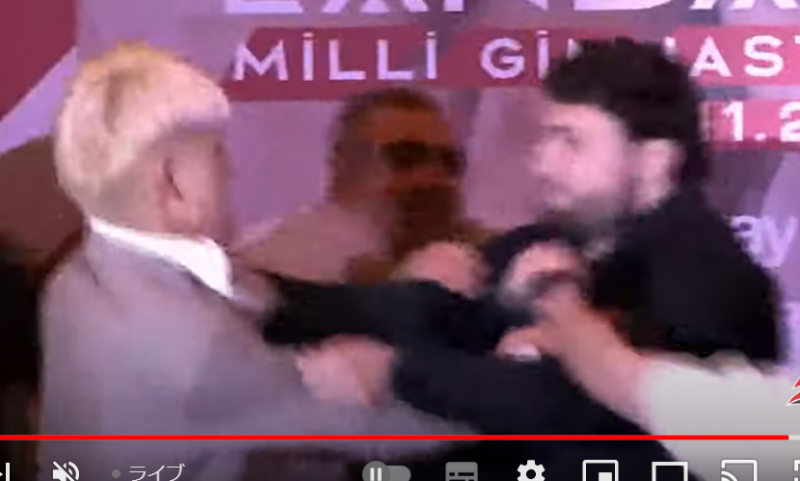 ケラモフが鈴木を突き飛ばした(『RIZIN』YouTubeチャンネル)