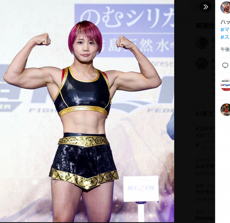 マッスルポーズ!ストリートファイターのキャラ・マリーザの衣装だ(@kanawatanabe821より)