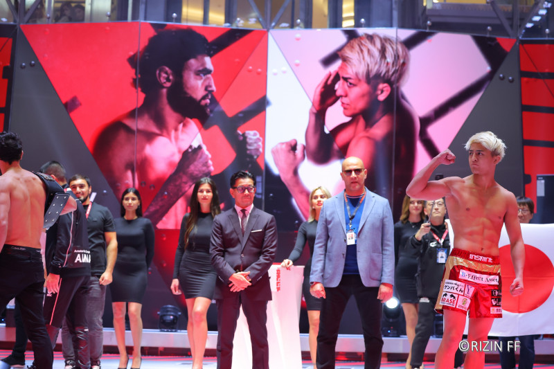 ステージを去るケラモフを見ながら鈴木は片手でマッスルポーズ