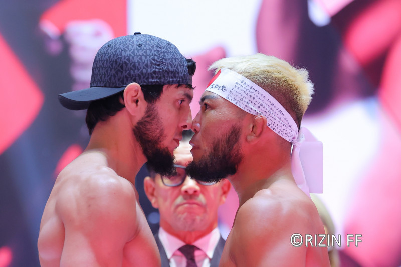 互いの鼻がつくほどの至近距離で睨み合った(3日のフェイスオフイベント)