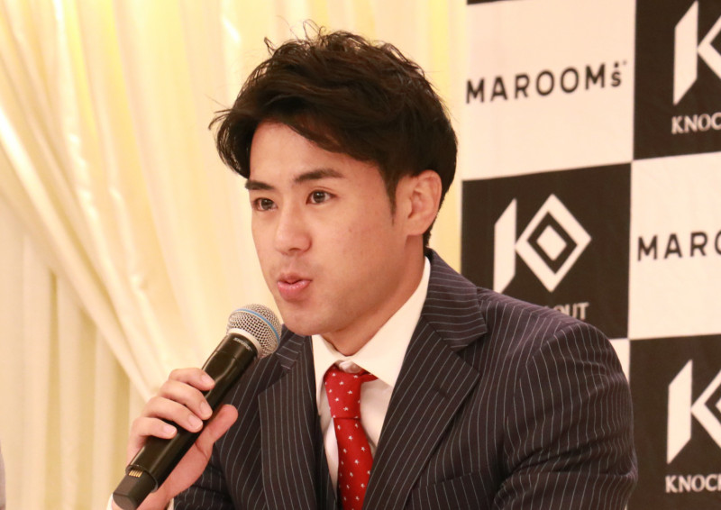 会見で意気込む小笠原