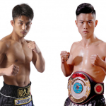 朝久裕貴(左)が武林風トップファイターのジン・インと対戦