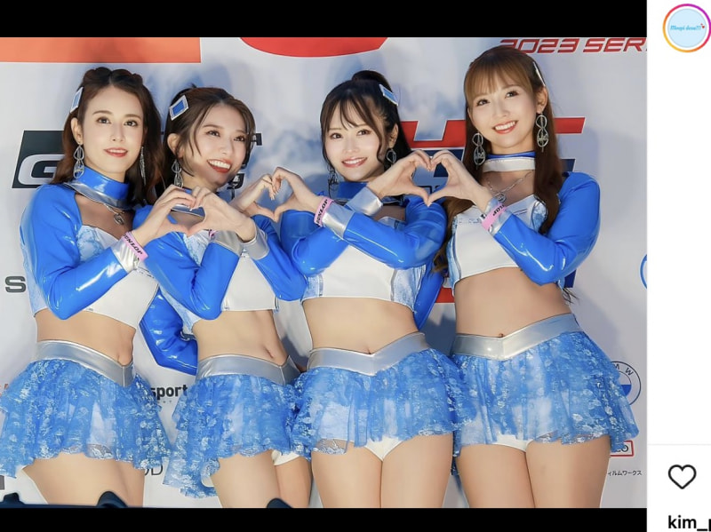 桐生もえこ(右から2人目)のレースクイーン姿(桐生もえこインスタより)