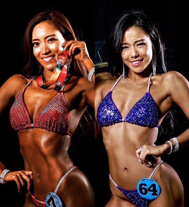 本格フィットネス競技者のSHINO(左)とMAIKO(右)がラウンドガール挑戦(NJKF公式サイトより)