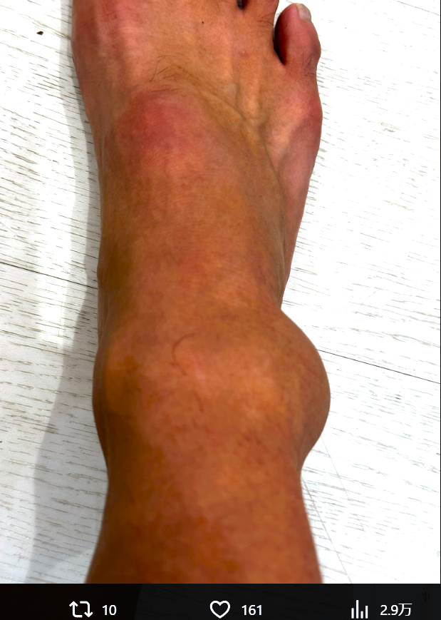 皇治はMMAスパーリングで右足に大きなコブが出来た写真を公開し(@1_kouzi)