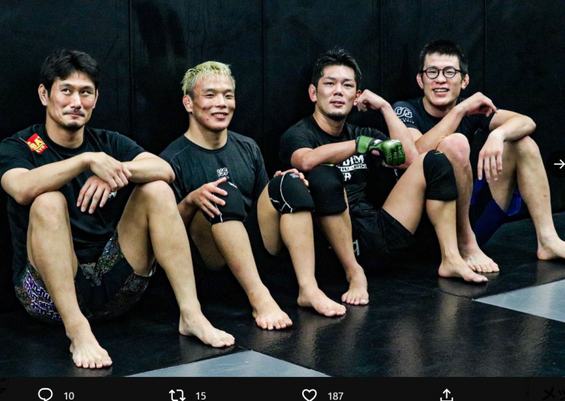 MMAの練習を積む錚々たるメンバー(左から)住村、竹浦、皇治、青木(@1_kouziより)