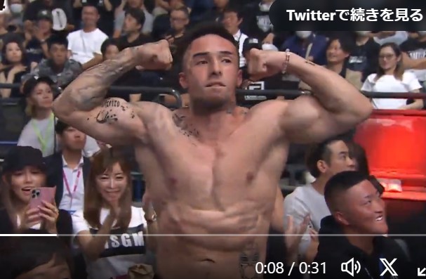 今年9月『RIZIN.44』でリング上の安保に呼びかけられた木村がマッスルポーズ!