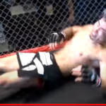 レフェリーに支えられながらフラつく松田(@GrachanOfficial)