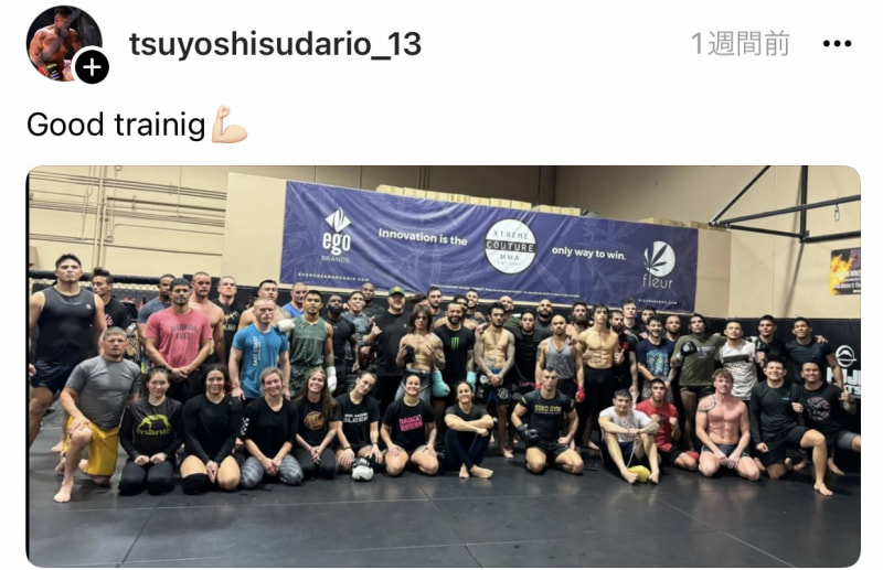 現在ラスベガスのエクストリーム・クートゥアで練習、左端がスダリオ @tsuyoshisudario_13