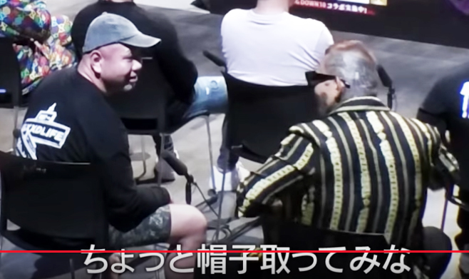 SATORU(右)がサップ西成(左)を挑発(朝倉未来YouTubeより)