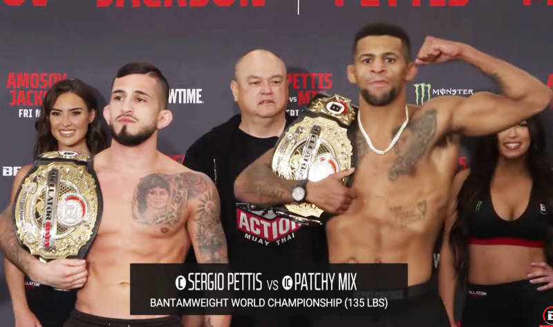 バンタム級王座統一戦、勝利するのは、ペティス(左)か、ミックス(右)か(Bellator 公式YouTubeより)