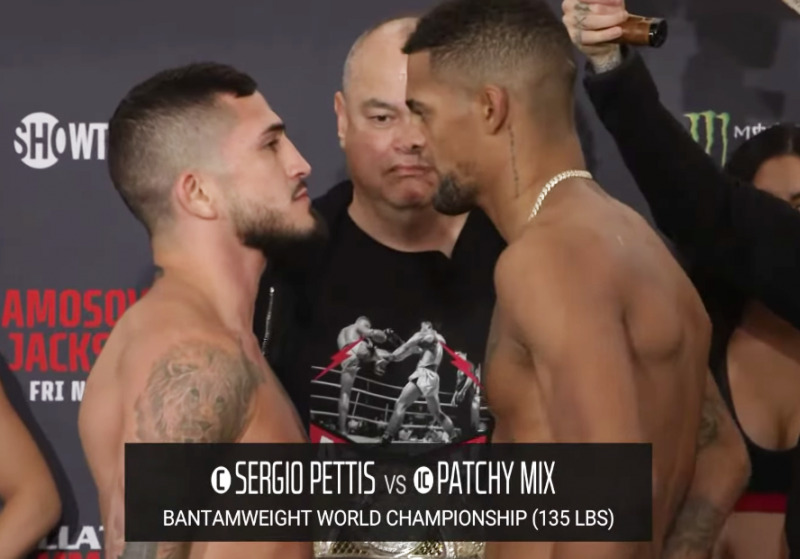 身長差は14cm、ペティスがミックスを見上げる(Bellator公式YouTubeより)