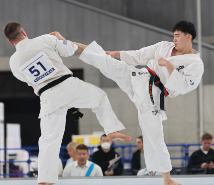 上段蹴りを炸裂させた山上大輝、合わせ一本で勝利した