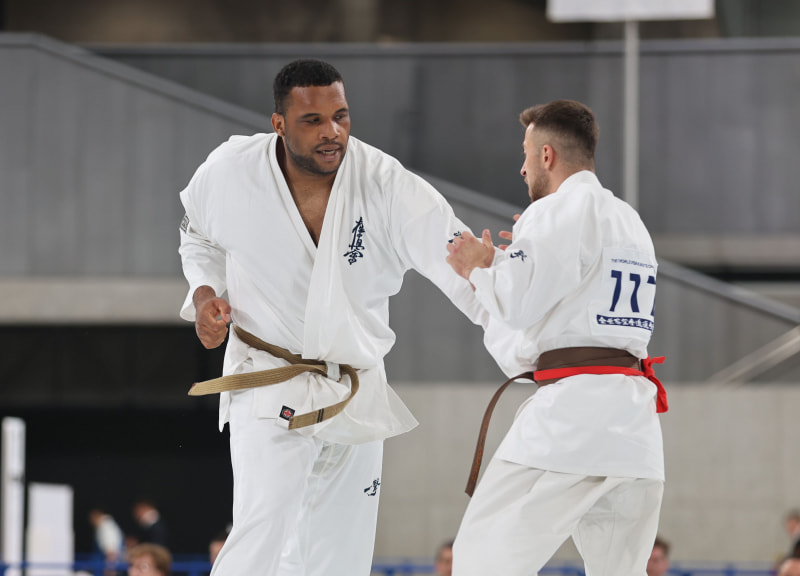 2m4cmのイカロ(ブラジル・左)が178cmのトルコ選手に圧倒