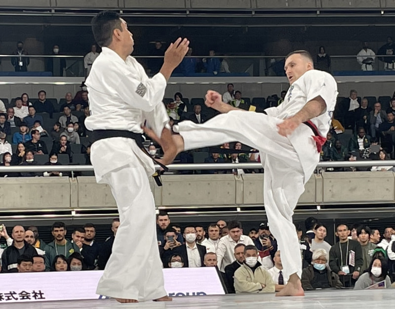 前回世界大会2位のイエロメンコ(ロシア)の中段蹴り
