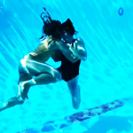 水中でダンベルを使った筋トレを行うララ@alejazularaより